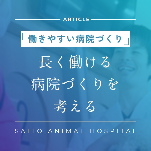 企業だけでなく動物病院でも働き方改革が、大きな課題となっています。そんな中、さいとう動物病院が考える「働きやすさ」や取り組みについて、副院長の川上がご紹介させていただきます。